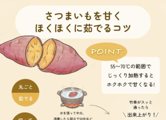 さつまいもを甘くほくほくに茹でるためのポイントと茹で方を解説