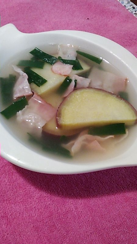 さつまいもとニラの中華スープ