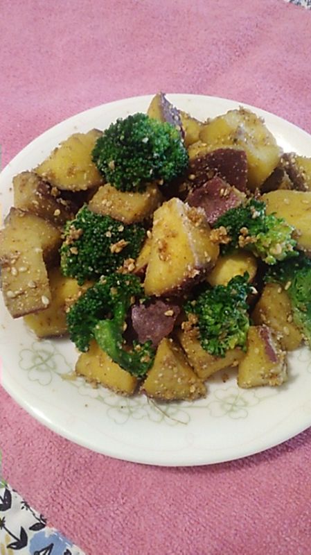 冷凍ブロッコリーを使ってかんたんに作るさつまいもとブロッコリーの胡麻和えのレシピ/作り方を紹介します。栄養も抜群なのでぜひ作ってみてください。