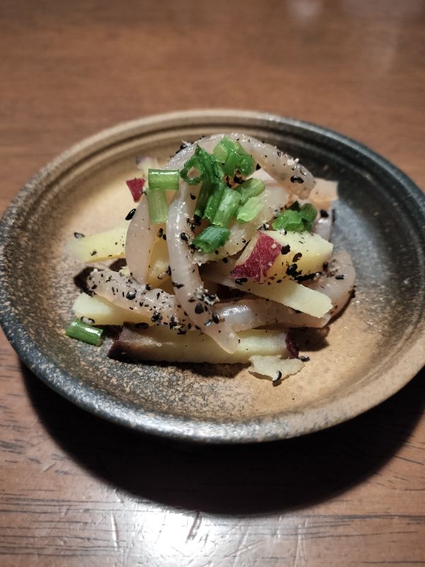 ホクホクで優しい甘みのあるさつまいもと、食感の良いこんにゃくのごま和えです。とても簡単に作れて忙しい時のごはんのおかずにぴったりな一品なのでぜひ作ってみてください。