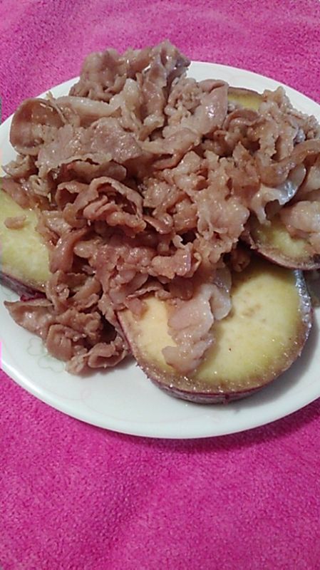 5.豚バラ肉に焼色がついたら、さつまいもを入れて炒める。