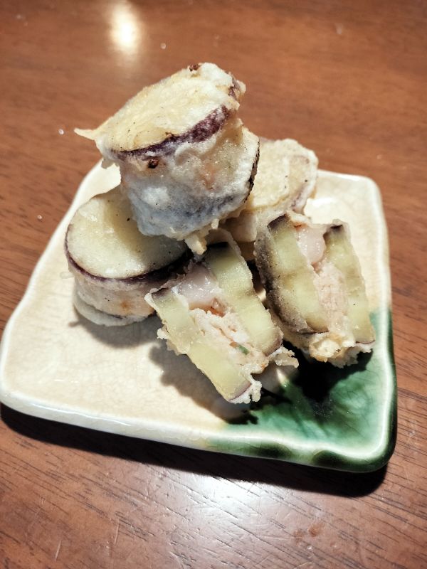 7.泡が小さくなり衣がカラリとしてきたら取り出し、油を切ってさつまいものはさみあげの完成。