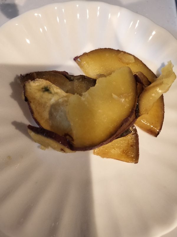 1.さつまいもはきれいに洗い、5mm幅の半月切りに切る。