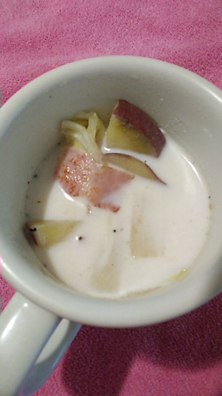 7.器に盛り付けたらさつまいもと白菜のミルクスープの完成