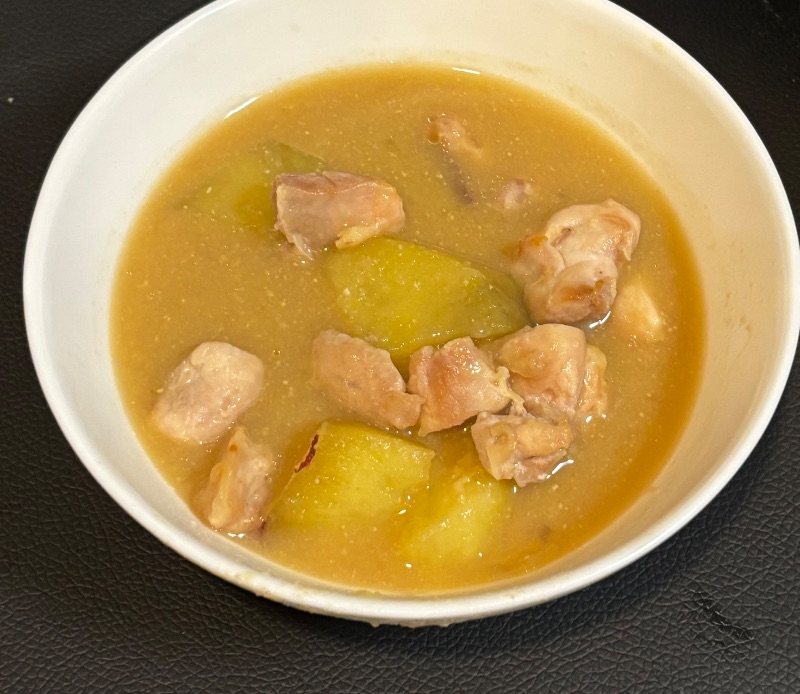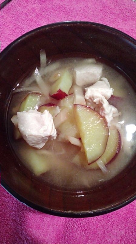 さつまいもの優しい甘みと鶏のうまみ・コクがおいしいお味噌汁です。
