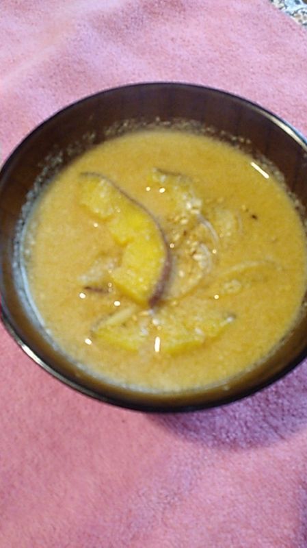 豆乳のまろやかさとすりごまのコク、そしてさつまいもと玉ねぎの素材由来の優しい甘みが溶け込んがおいしいみそ汁です。