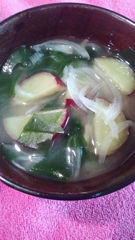 さつまいもとわかめで食物繊維がたっぷりと摂れる、腸内環境を整えたい方にもおすすめの味噌汁です