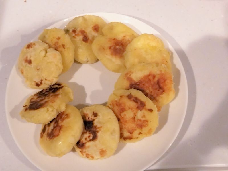 5.熱したフライパンに有塩バターをひき、成形したいももちを乗せて中火で加熱する