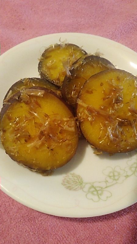 さつまいもの甘みに、甘辛いしょうゆ味がしみたかつお節の風味が効いた一品です。甘いさつまいもがごはんにぴったりのおかずになりますよ。