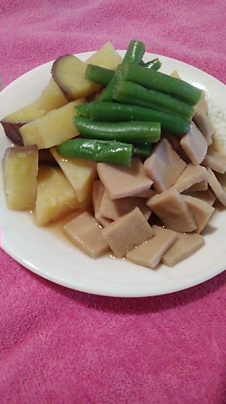 だしの染み込んだ高野豆腐と煮付けられたさつまいもの甘さがおいしい1品です。