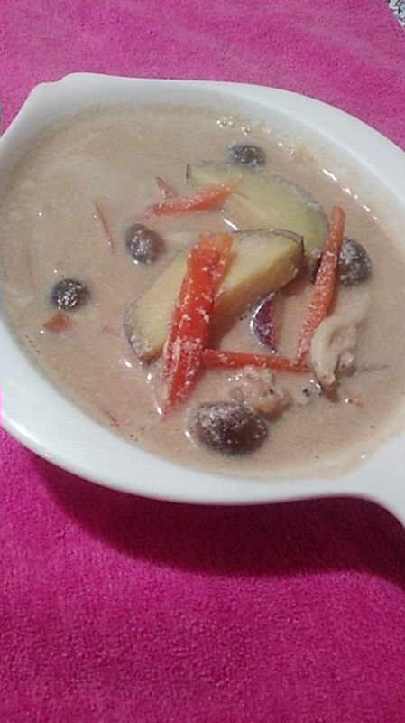 4.豆乳を加えて沸騰させない程度に温め、火を止めて味噌?を溶き入れて完成