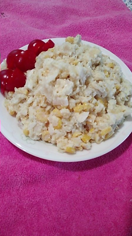 コーンにマッシュしたサツマイモがしっかり絡みつき生玉ねぎのかすかな辛みが残りレモンの爽やかな酸味が相まって美味しいです。今回買ったトマトはかなり味が良かったです。