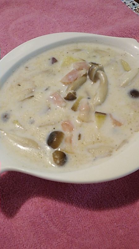 具材がゴロゴロ入った食べごたえのあるチャウダーです。ミルクのコクとさつまいもの優しい甘さがおいしいです。