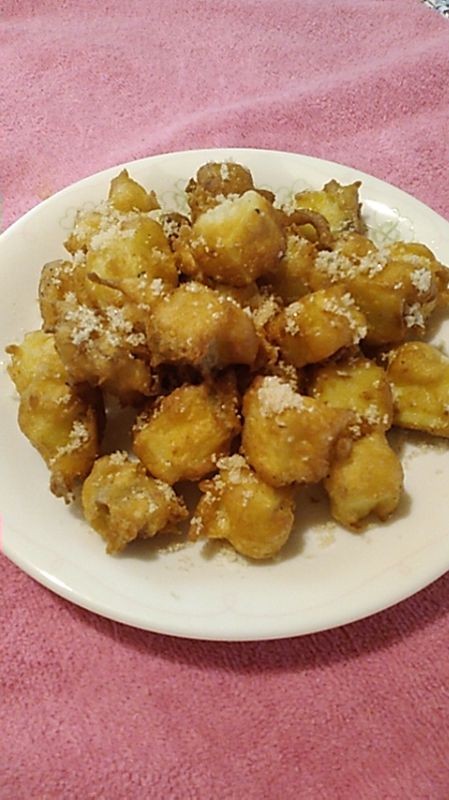 5.全体がきつね色になるまで数回に分けて揚げたら取り出して粗熱をとり、粉砂糖をふって完成。