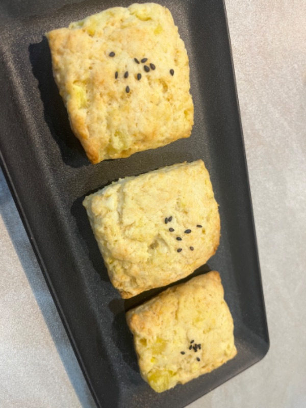 サクサクでおいしいホットケーキミックスを使って簡単に作れるさつまいもスコーンのレシピ/作り方を紹介します。